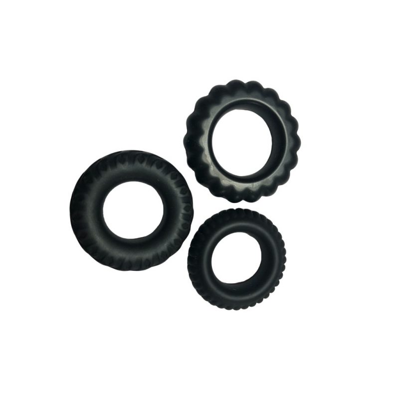 3 Silicone Cock Rings in One Set: Progressive sizes for tailored pleasure.